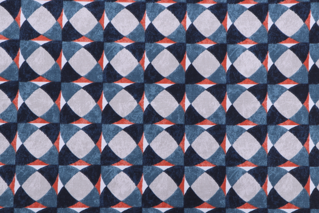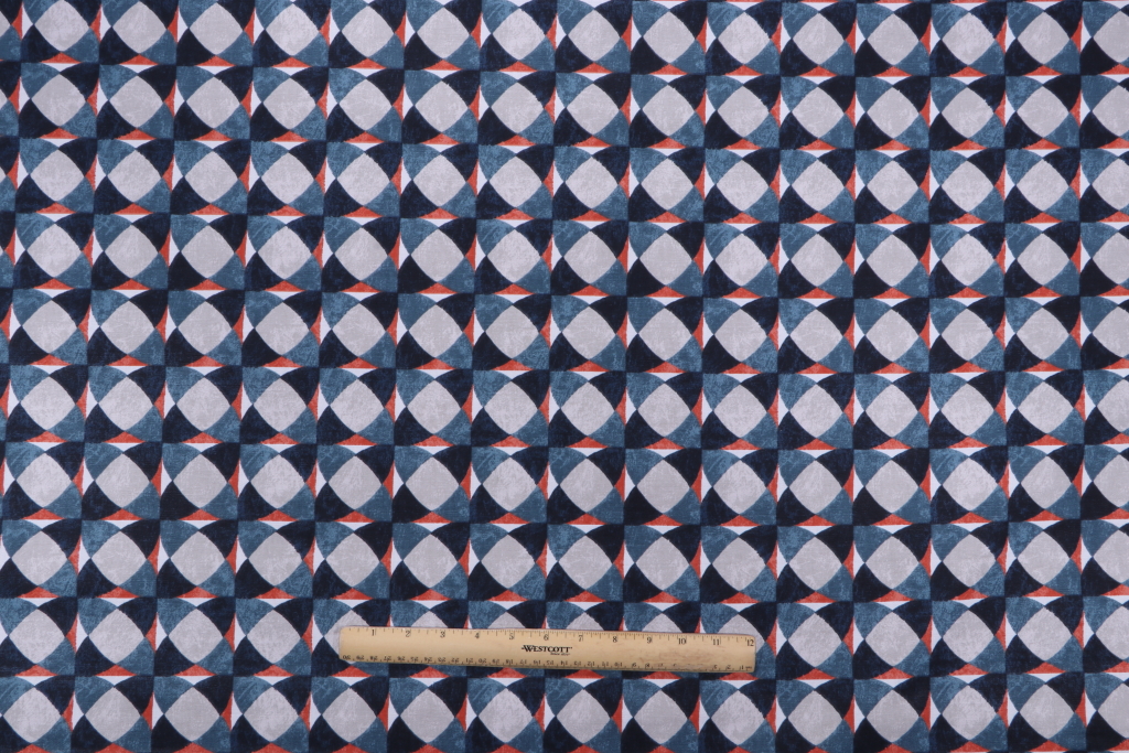 Robert Allen Echo Geo Printed Cotton Drapery Fabric in Admiral Details