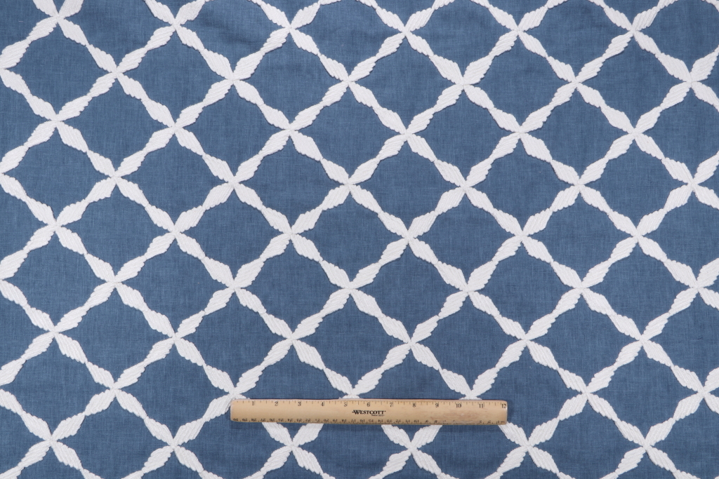 Sample orders of Waverly Andalus Embroidered Drapery Fabric in Aegean are not refundable.
