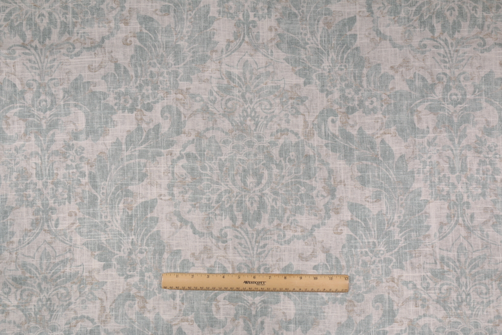 Covington Downton Printed Linen Blend Drapery Fabric in 544 Mist is a remnant, which is sold as a whole piece.