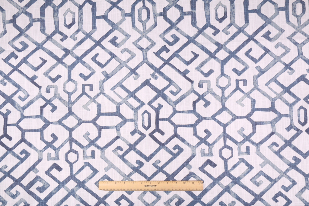 1.88 Yards Premier Prints Jing Slub Canvas Printed Cotton Drapery Fabric in Regal Blue Details
