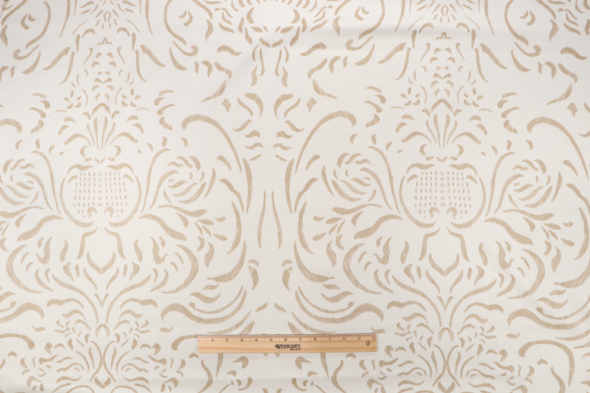 2.13 Yards Fonthill Pushkin Damask Hand-Printed Wool Drapery Fabric in Almond Details