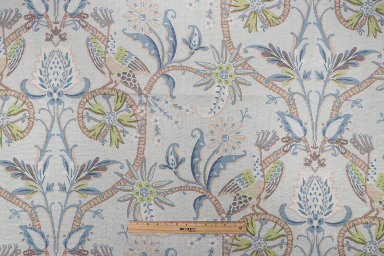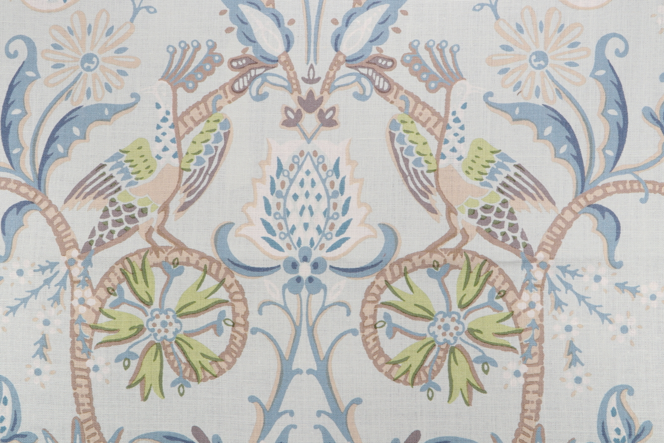 1 Yards Anna French Peacock Garden F924360 Printed Linen Drapery Fabric in Aqua for Thibaut Details