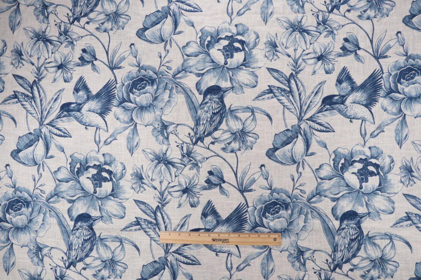0.88 Yards Covington Colibri Printed Linen Blend Drapery Fabric in 593-Indigo Details