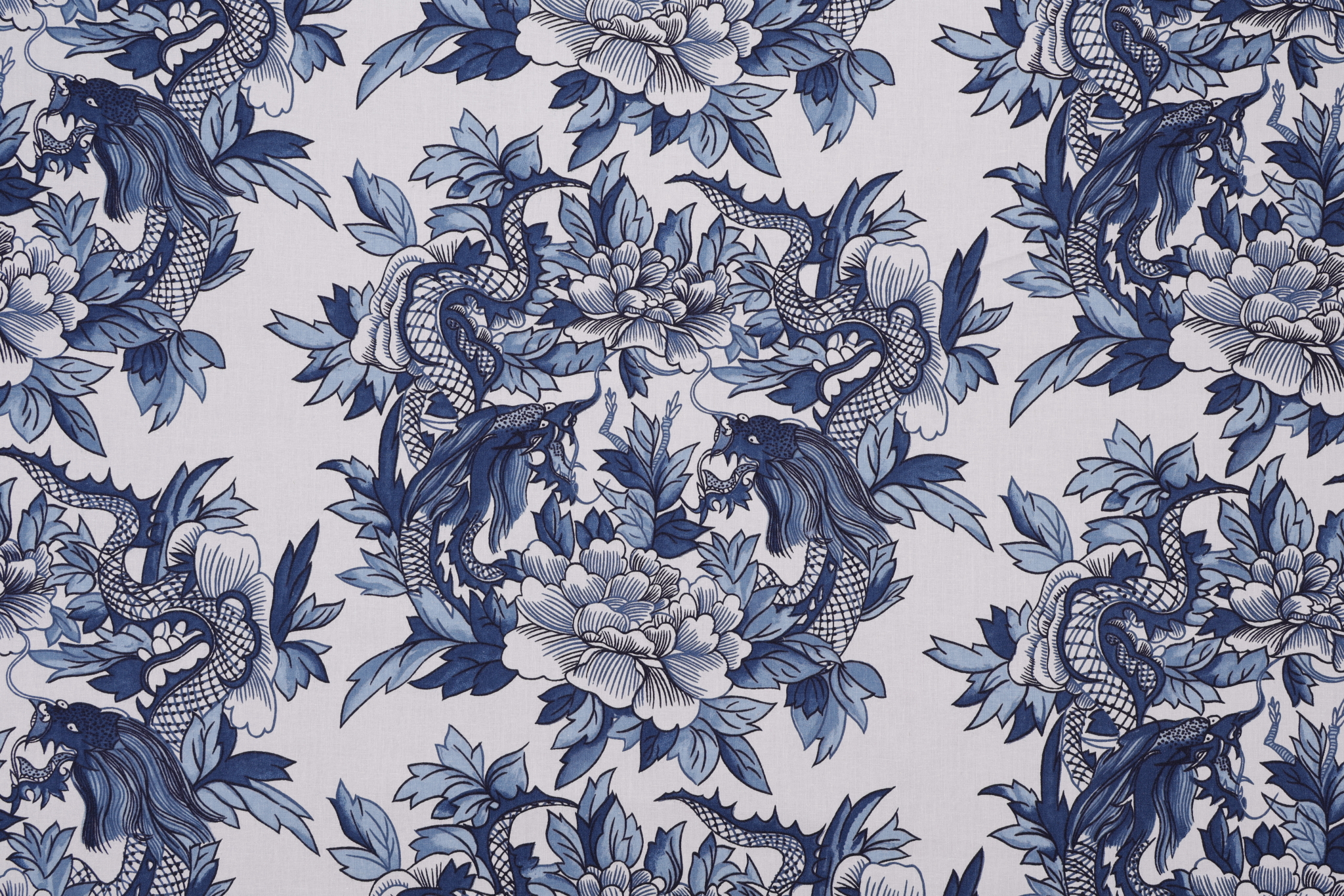 Ralph Lauren Nanking Printed Cotton Drapery Fabric is a remnant. Fabric remnants refer to leftover pieces of fabric from production runs at manufacturing sites or pieces that remain from by the yard stock. The lengths of these remnants can vary from a few inches to several yards and are typically sold at a reduced price, since they represent remaining inventory.