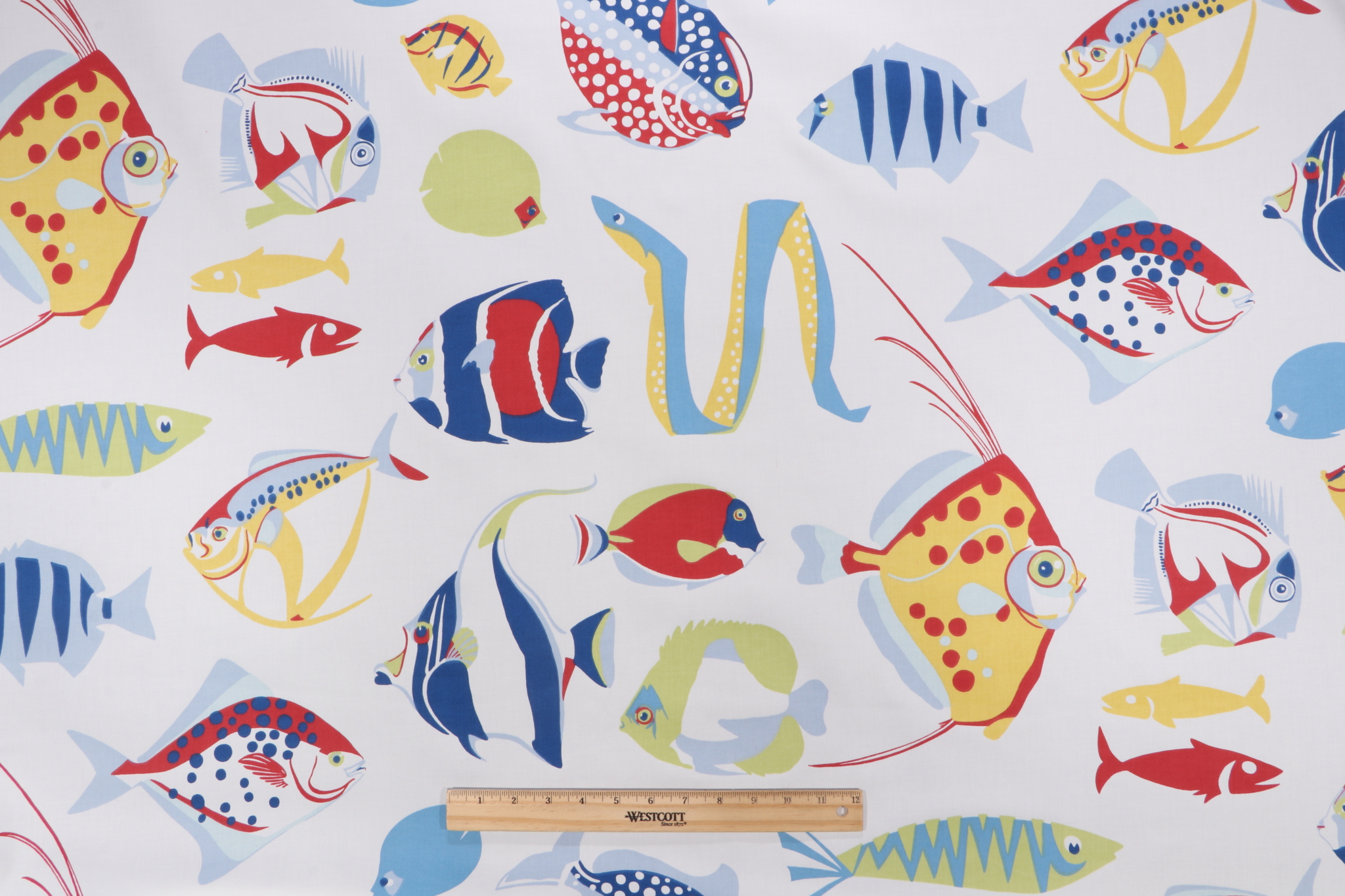 12 Yards Thibaut Cozumel F916040 Printed Cotton Drapery Fabric in Red, White and Blue Details