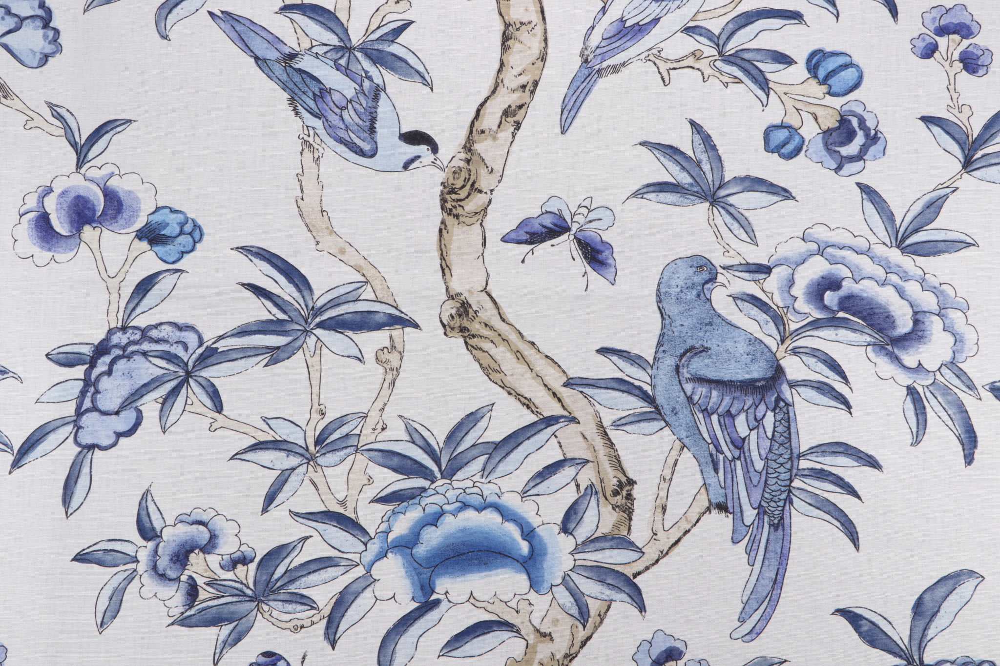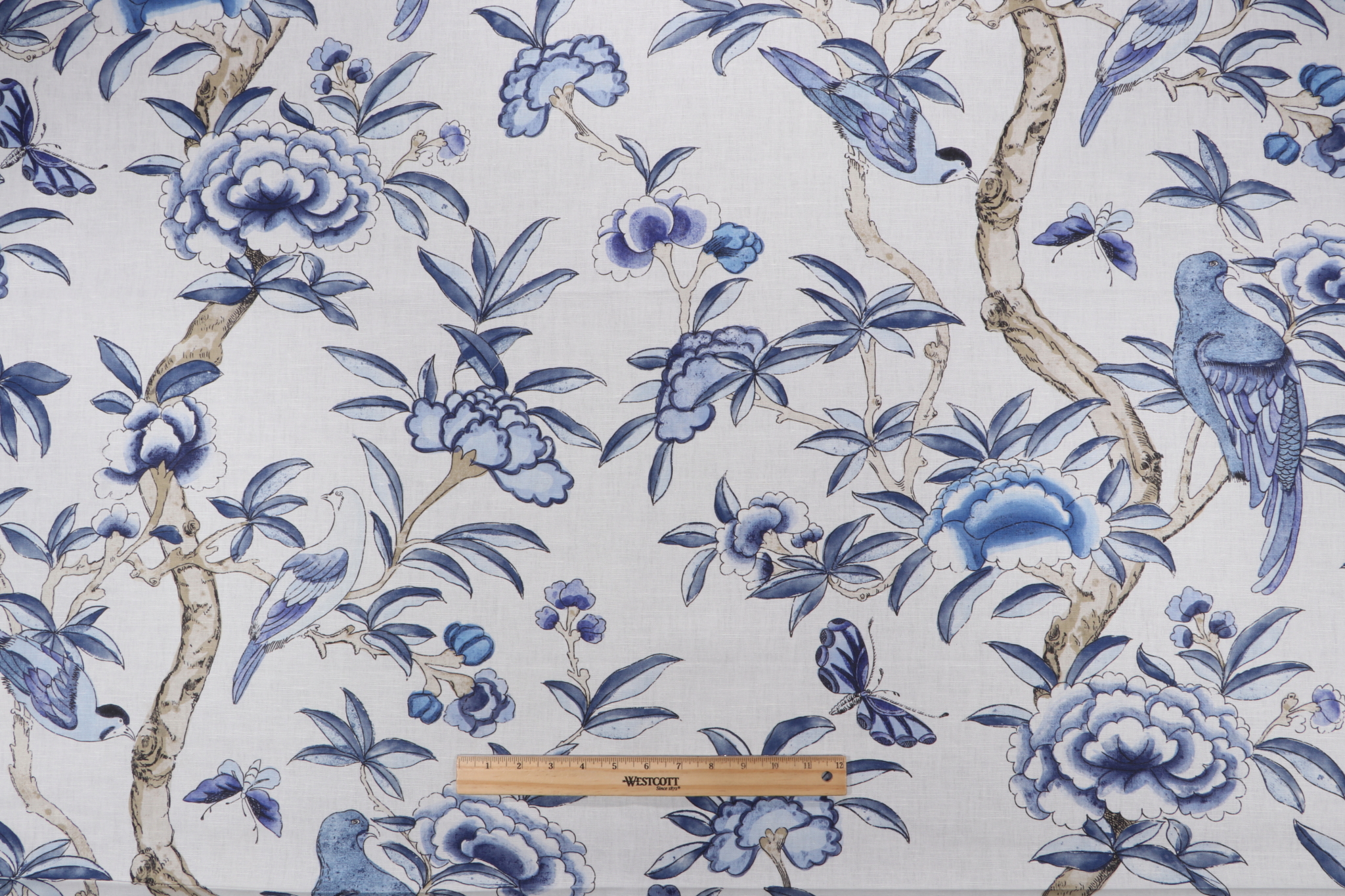 0.63 Yards Thibaut Giselle F914224 Printed Linen Blend Drapery Fabric in Blue and White Details