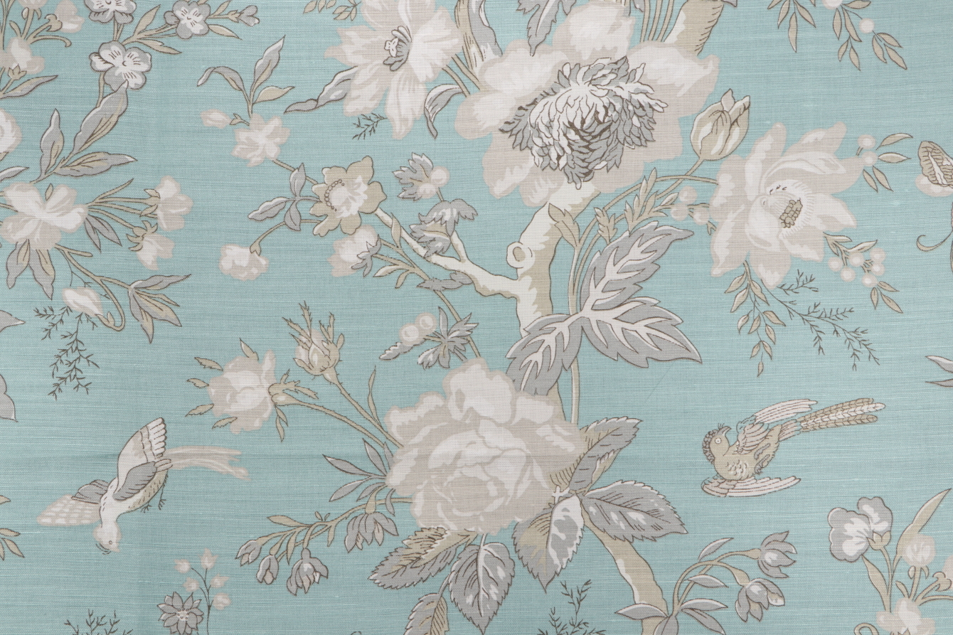 1 Yards Thibaut Nemour F936130 Printed Linen Blend Drapery Fabric in Aqua Details