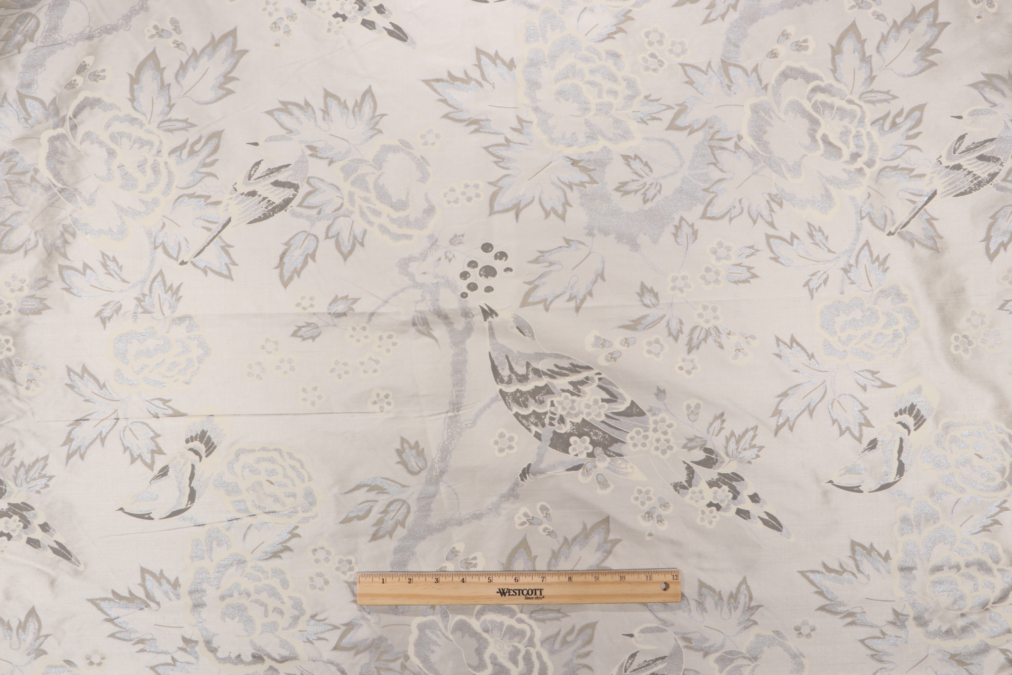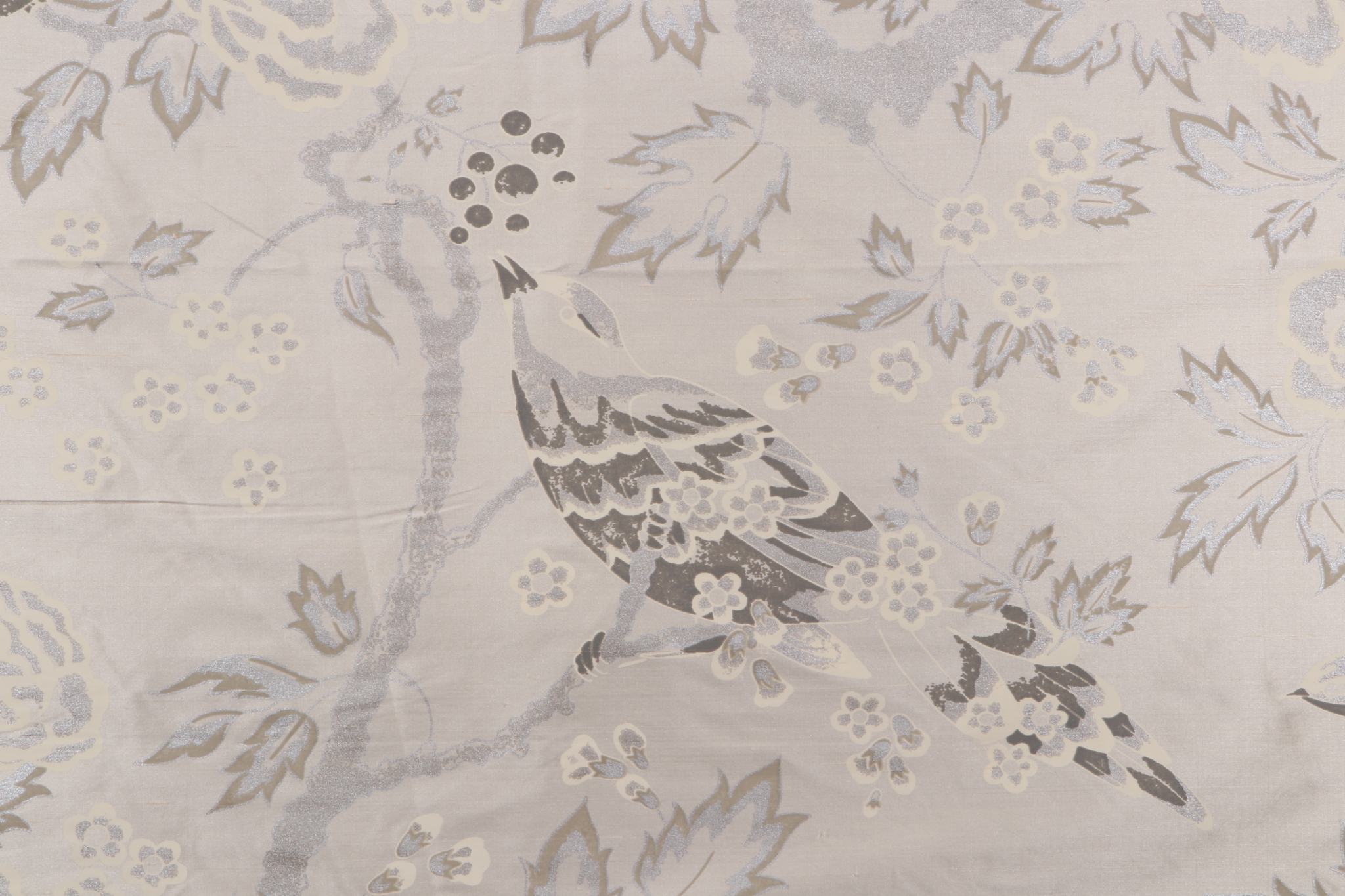 2.88 Yards Thibaut Songbirds AF1363 Printed Silk Drapery Fabric in Cream Details