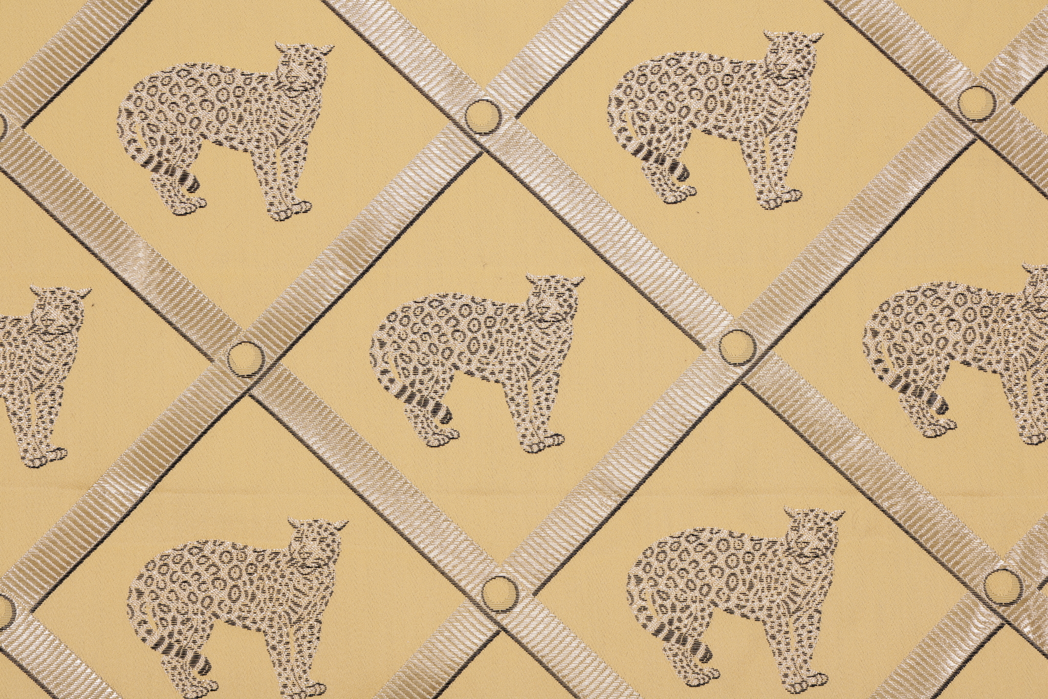 12.75 Yards Jaguar Trellis Damask Upholstery Fabric in Gold/Black Details