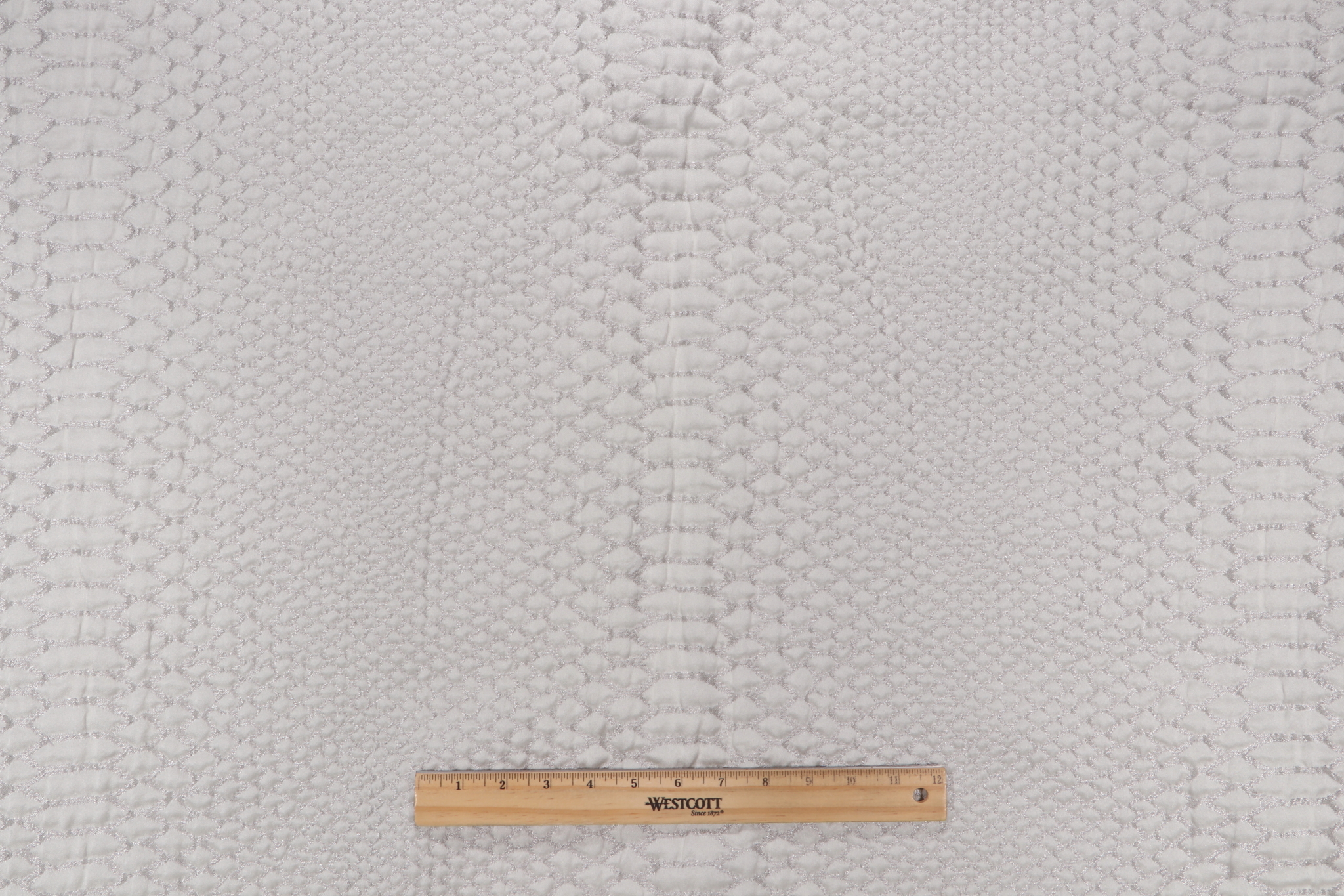 Tarasque Matelasse Upholstery Fabric in Silver is a remnant, which is sold as a whole piece.