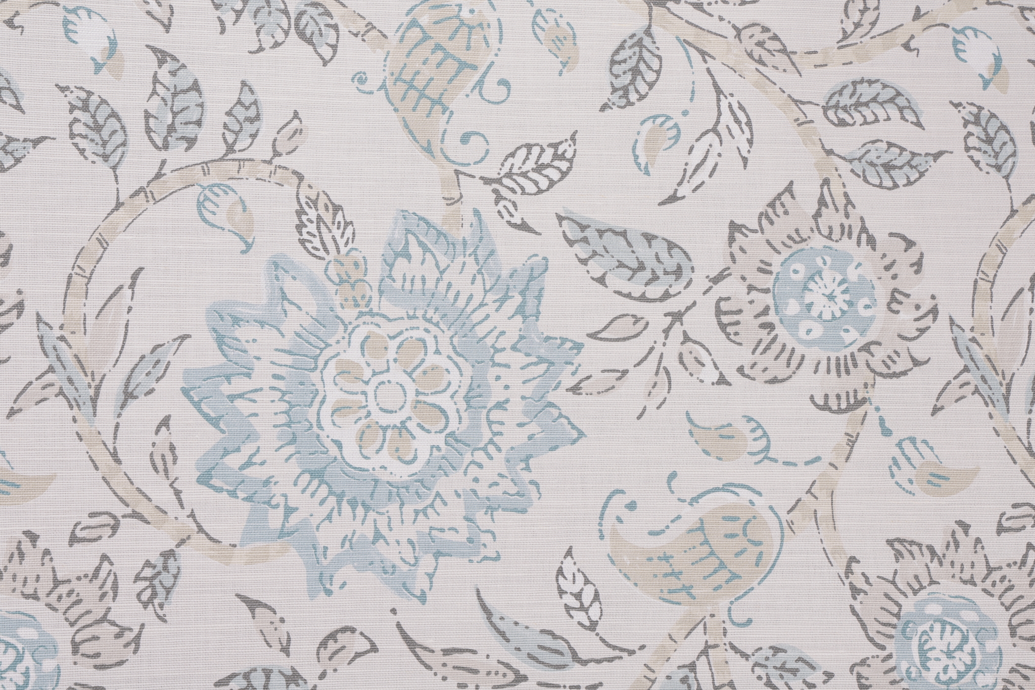 Thibaut Sevita F964112 Printed Linen Blend Drapery Fabric in Aqua and Beige Details