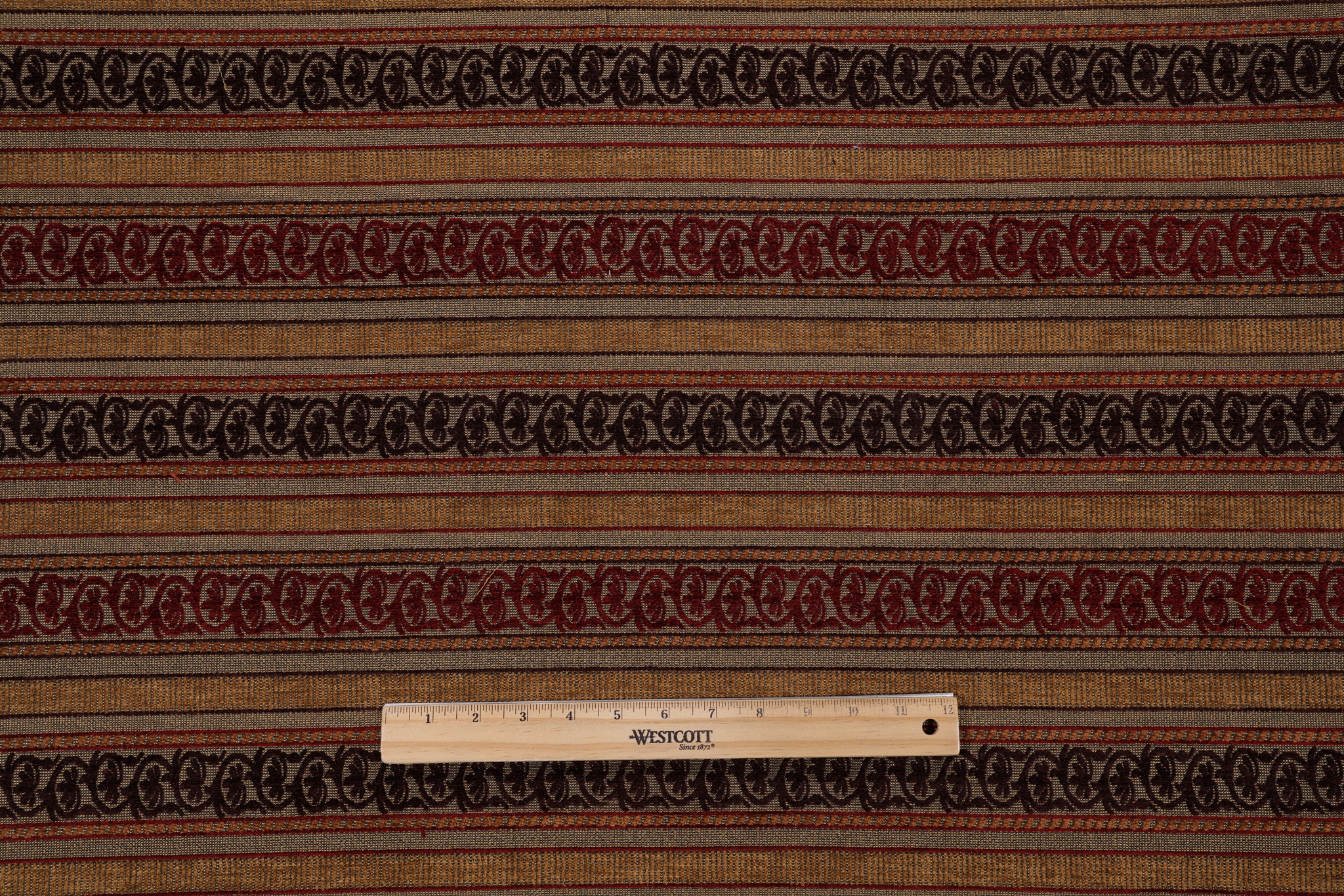 If you order a sample of Claudio Woven Chenille Upholstery Fabric in Autumn the size of the swatch you receive will be approximately 4" x 6". This is enough fabric to verify color and texture, but may not be large enough to capture an entire pattern.