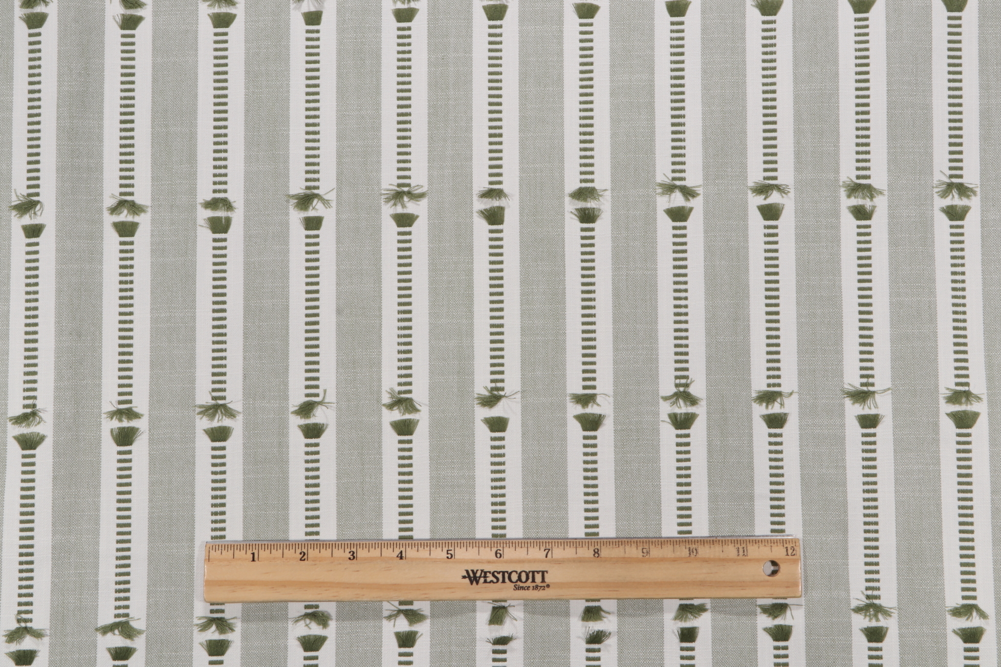 If you order a sample of Richloom Peek Woven Decorator Fabric in Basil the size of the swatch you receive will be approximately 4" x 6". This is enough fabric to verify color and texture, but may not be large enough to capture an entire pattern.