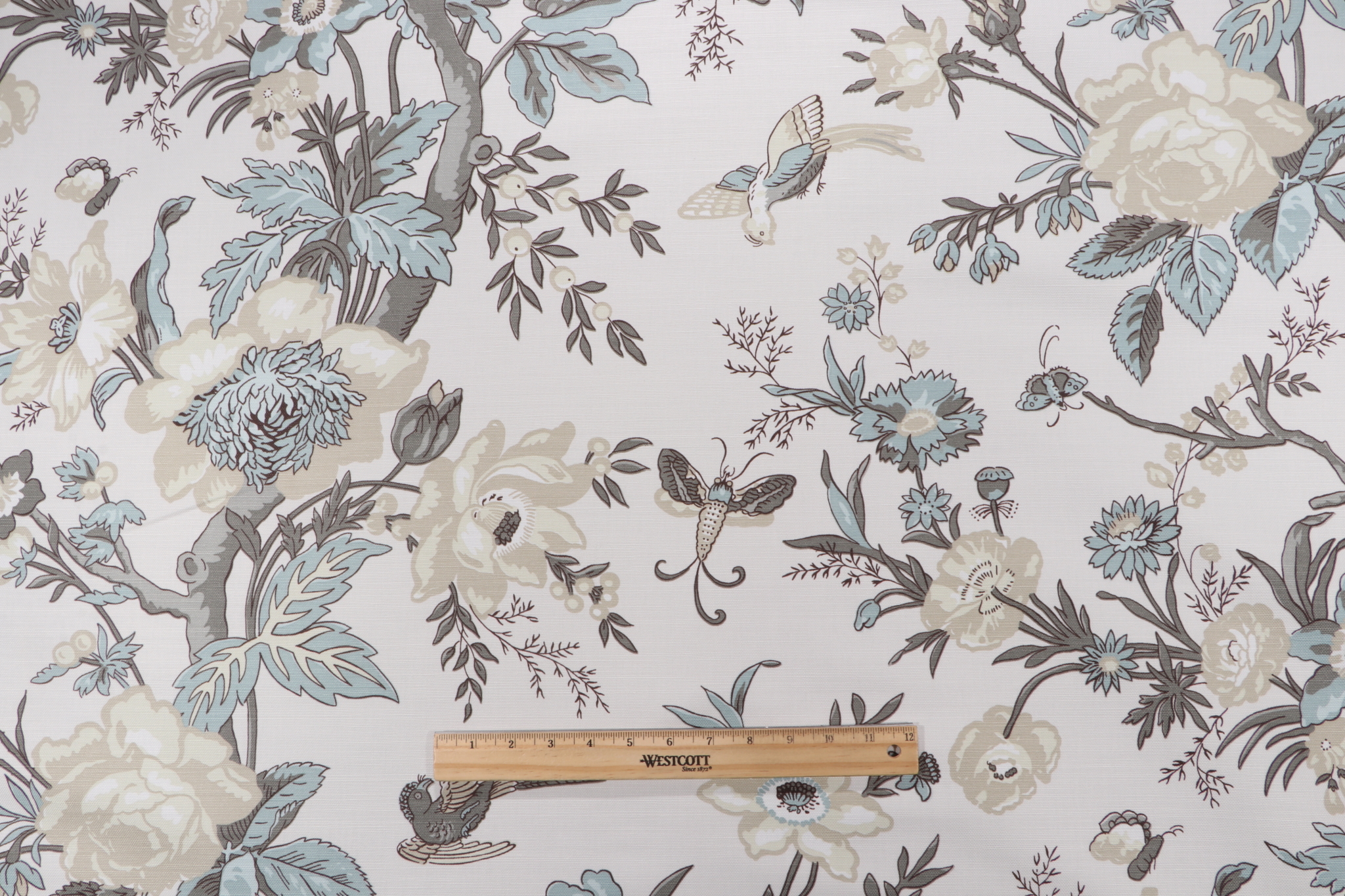 4.25 Yards Thibaut Nemour F936131 Printed Linen Blend Drapery Fabric in Beige and Aqua Details