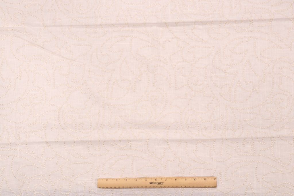 Vine Scroll Embroidered Drapery Fabric in Sand is a remnant, which is sold as a whole piece.