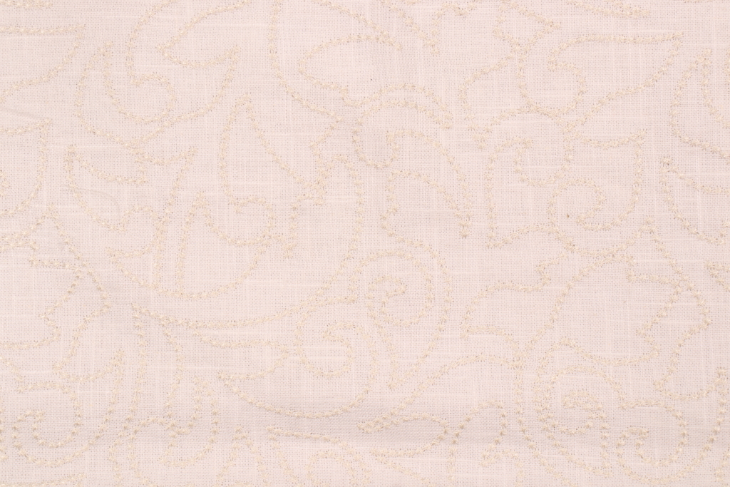 Vine Scroll Embroidered Drapery Fabric in Sand is a remnant. Fabric remnants refer to leftover pieces of fabric from production runs at manufacturing sites or pieces that remain from by the yard stock. The lengths of these remnants can vary from a few inches to several yards and are typically sold at a reduced price, since they represent remaining inventory.