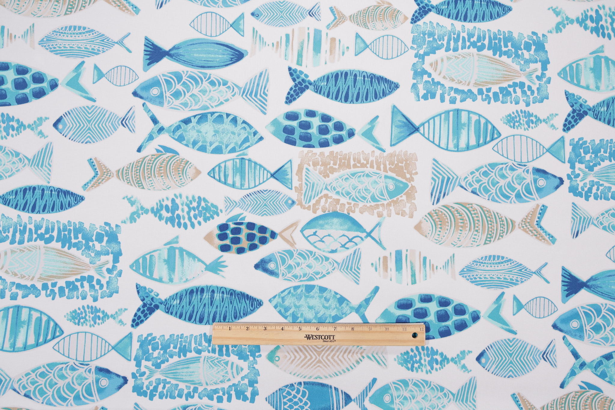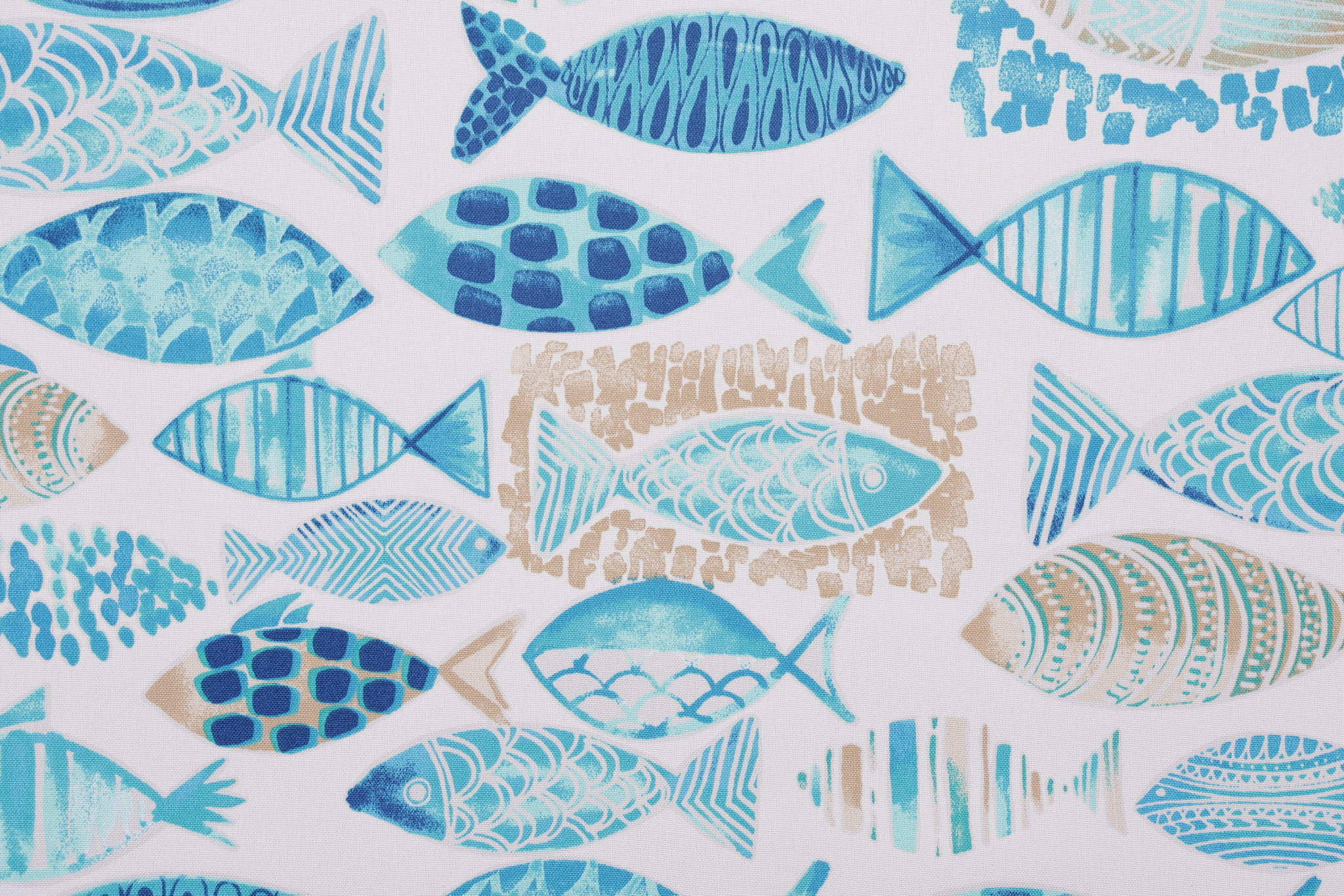 Bryant Fabrics Hooked Printed Polyester Outdoor Fabric in Seaside Blue Details