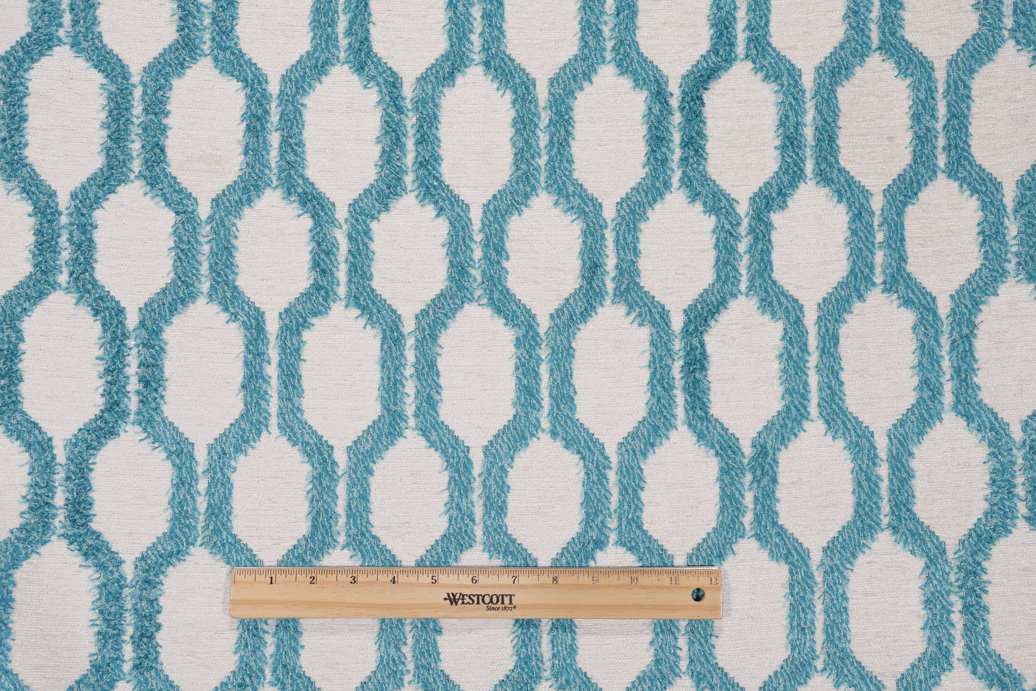 If you order a sample of Hilary Farr Fringe Benefits Woven Chenille Upholstery Fabric in 596-Teal for Covington the size of the swatch you receive will be approximately 4" x 6". This is enough fabric to verify color and texture, but may not be large enough to capture an entire pattern.