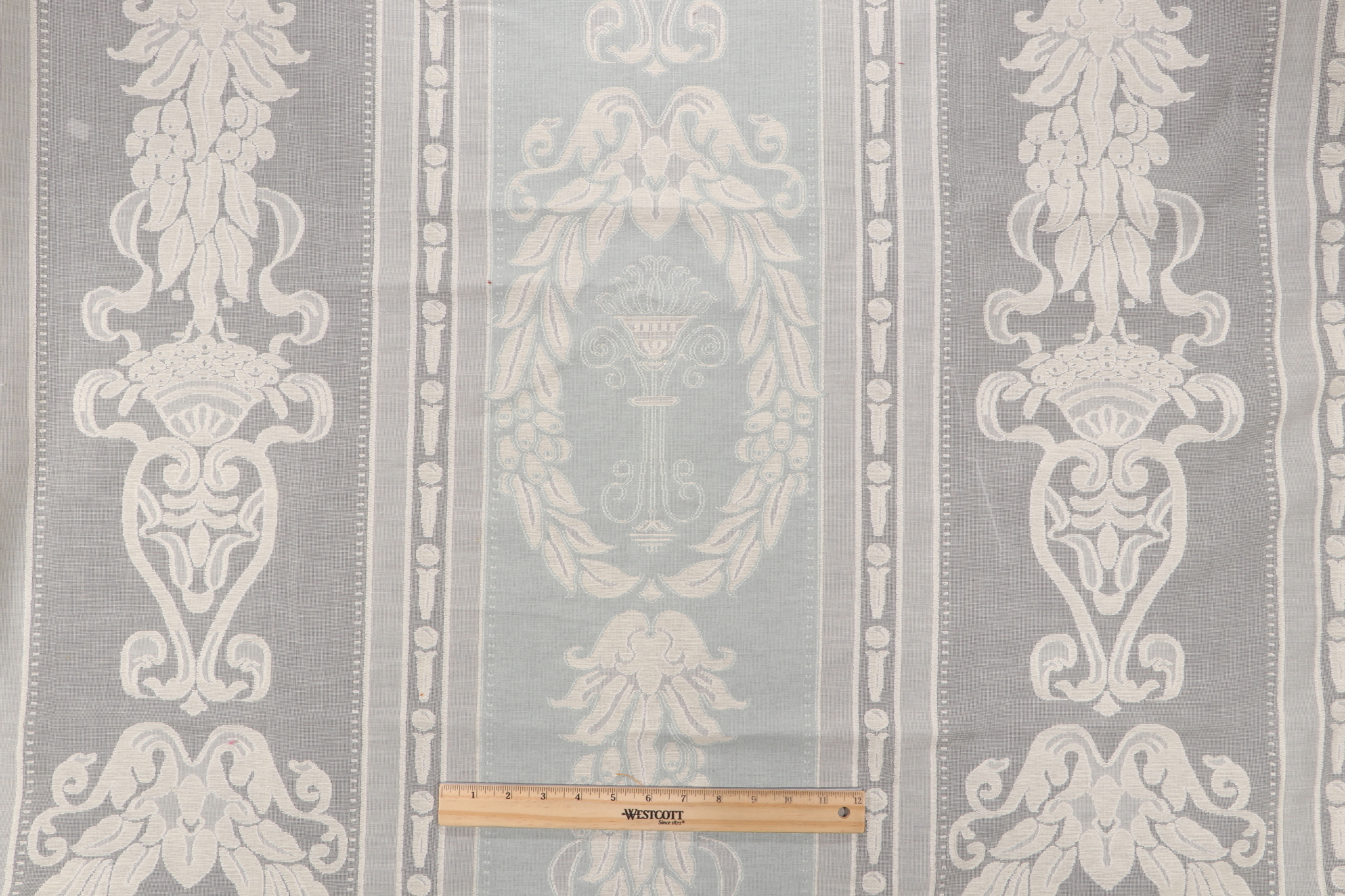 This listing showcases 5.88 yards of Kintyre Sheer, a drapery fabric by Fonthill. With this amount, you can create 2 medium-length drapery panels (50 inches wide and 84 inches long) for standard 7-foot windows. Note: If you are unsure about the suitability of this fabric for your specific use case please contact us prior to ordering.