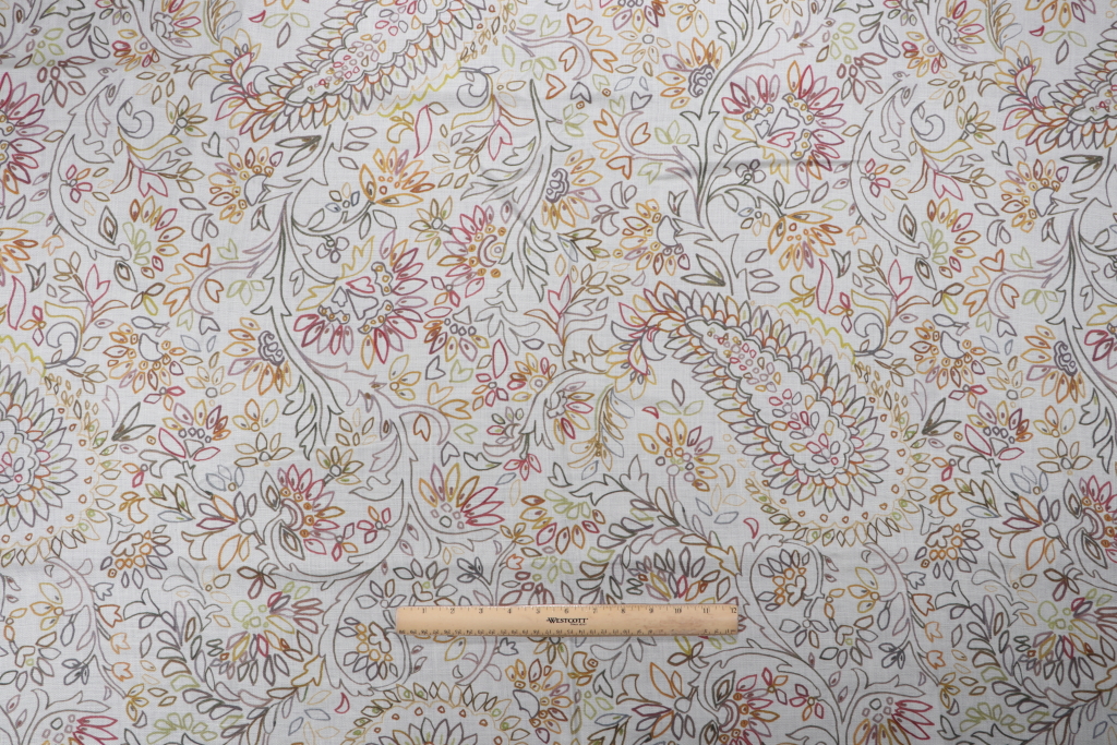 1.25 Yards Grey Watkins Crayola Paisley Printed Linen Drapery Fabric in Taupe/Multi Details