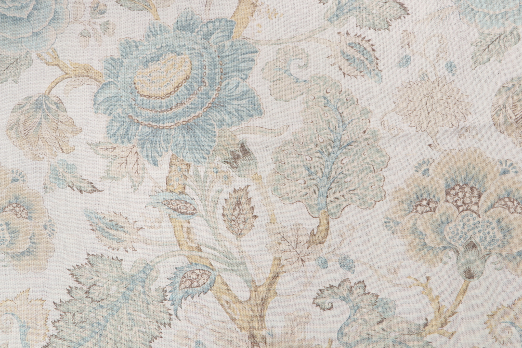 Available now: .5 yards of Acquitaine Porada, a versatile printed linen drapery fabric for your project. This fabric is suitable for short curtains, decorative tiebacks, or smaller window treatments. Note: If you are unsure about the suitability of this fabric for your specific use case please contact us prior to ordering.