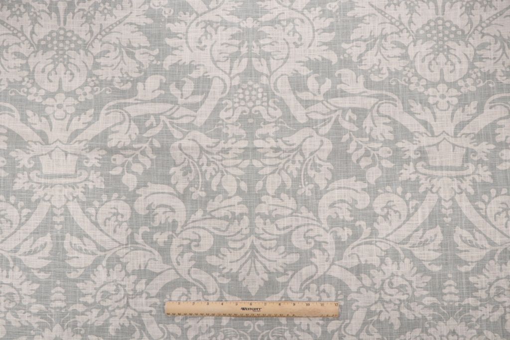 1 Yards Thibaut Residence Damask F91349 Printed Linen Blend Drapery Fabric in Slate Blue Details