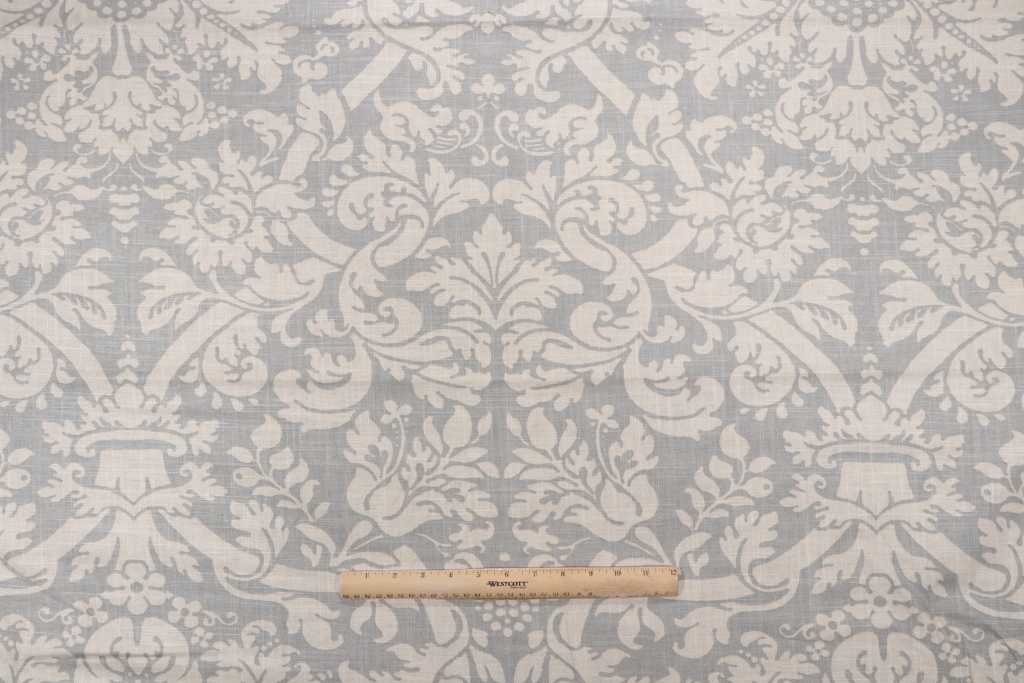 1 Yard Thibaut Residence Damask F91349 Printed Linen Blend Drapery Fabric in Slate Blue Details