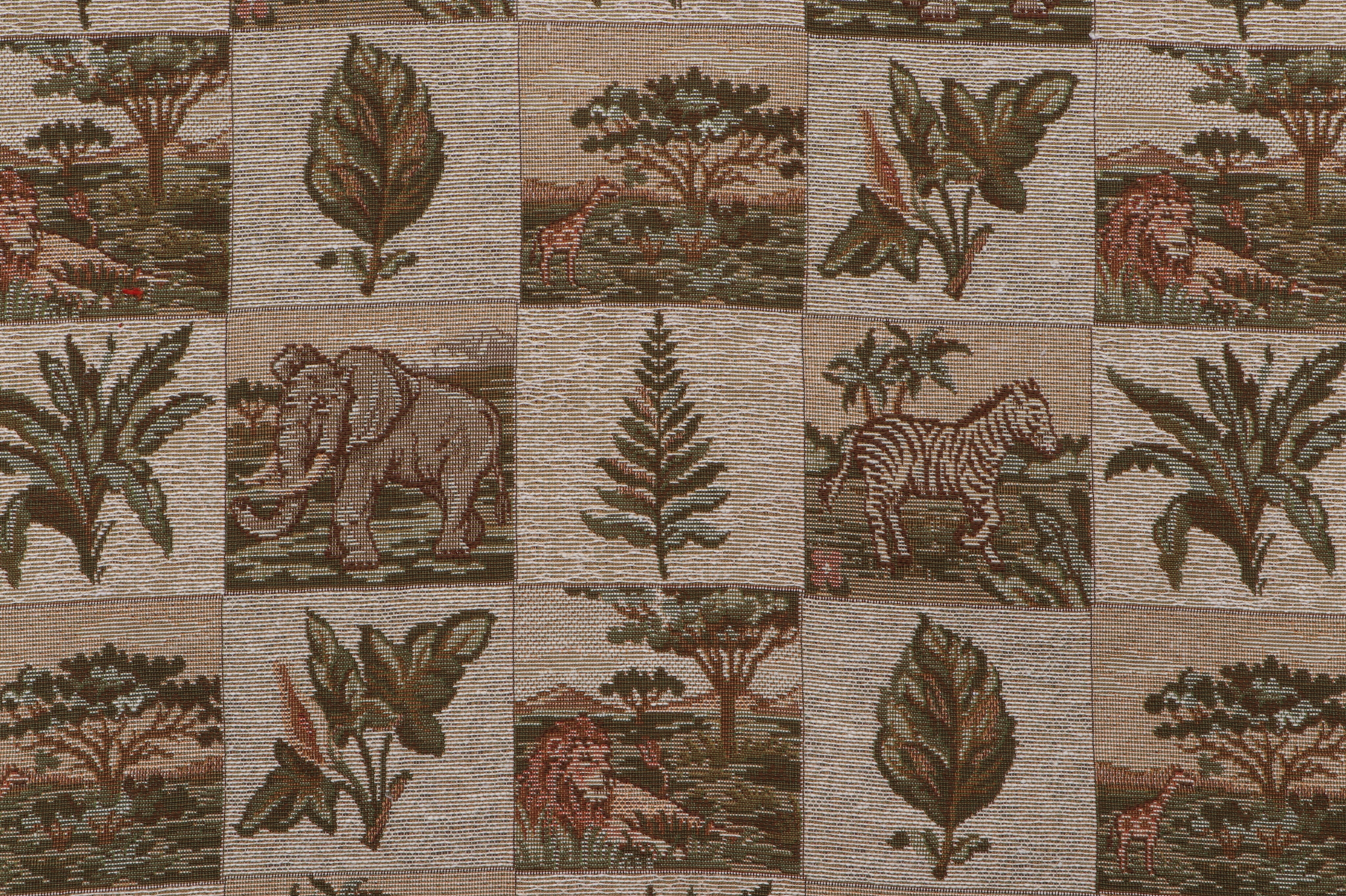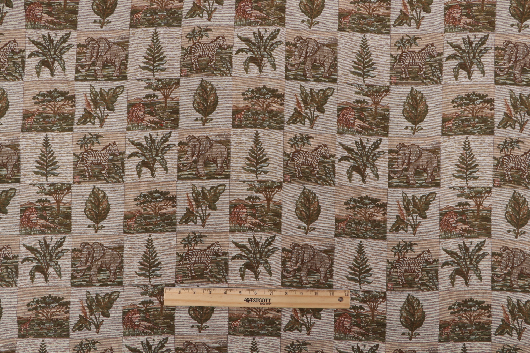 If you order a sample of Wild Kingdom Tapestry Upholstery Fabric in Green the size of the swatch you receive will be approximately 4" x 6". This is enough fabric to verify color and texture, but may not be large enough to capture an entire pattern.