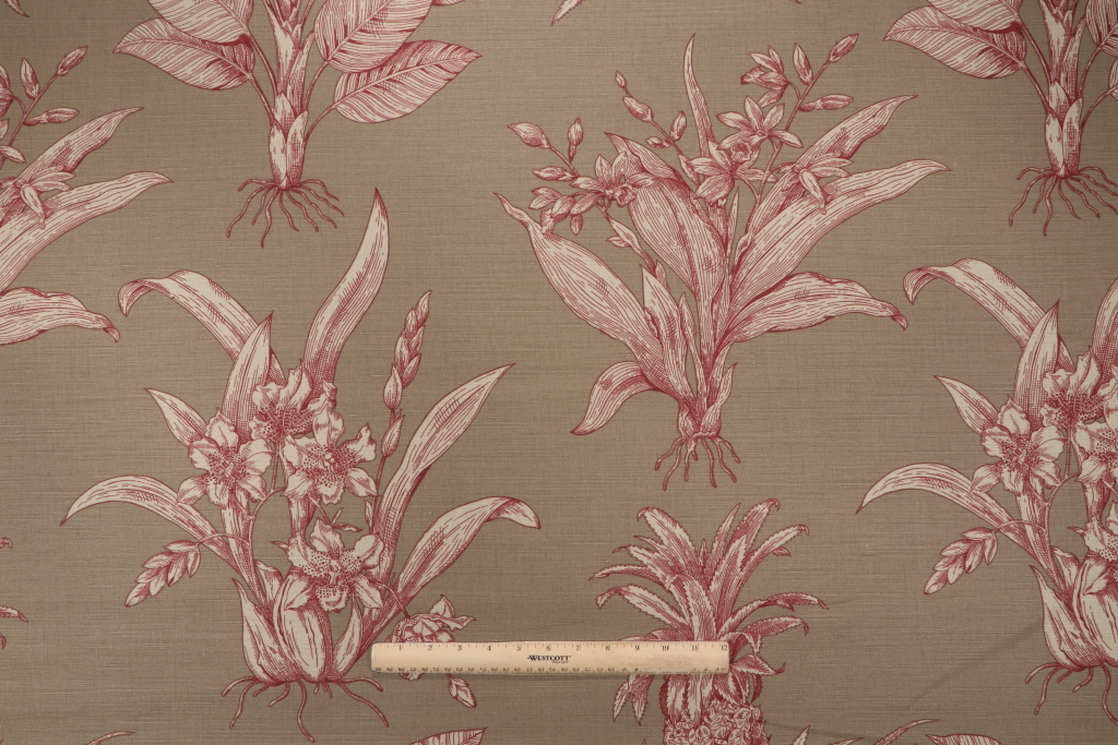 Thibaut Tropical Toile F99801 Printed Drapery Fabric in Burgundy on Tan Details
