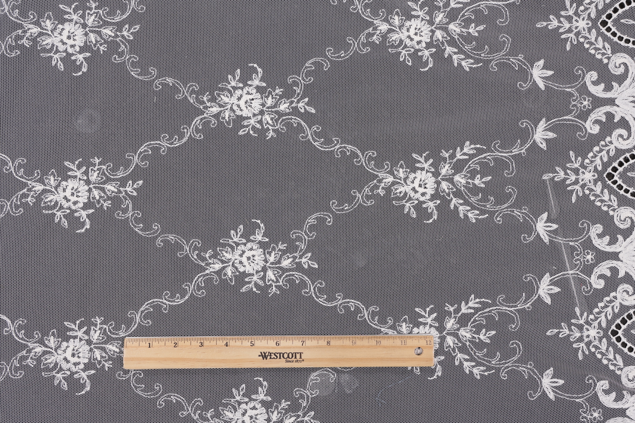 Now available: 1 yards of a premium sheer lace drapery fabric from Scalamandre. This fabric is suitable for short curtains, decorative tiebacks, or smaller window treatments. Note: If you are unsure about the suitability of this fabric for your specific use case please contact us prior to ordering.