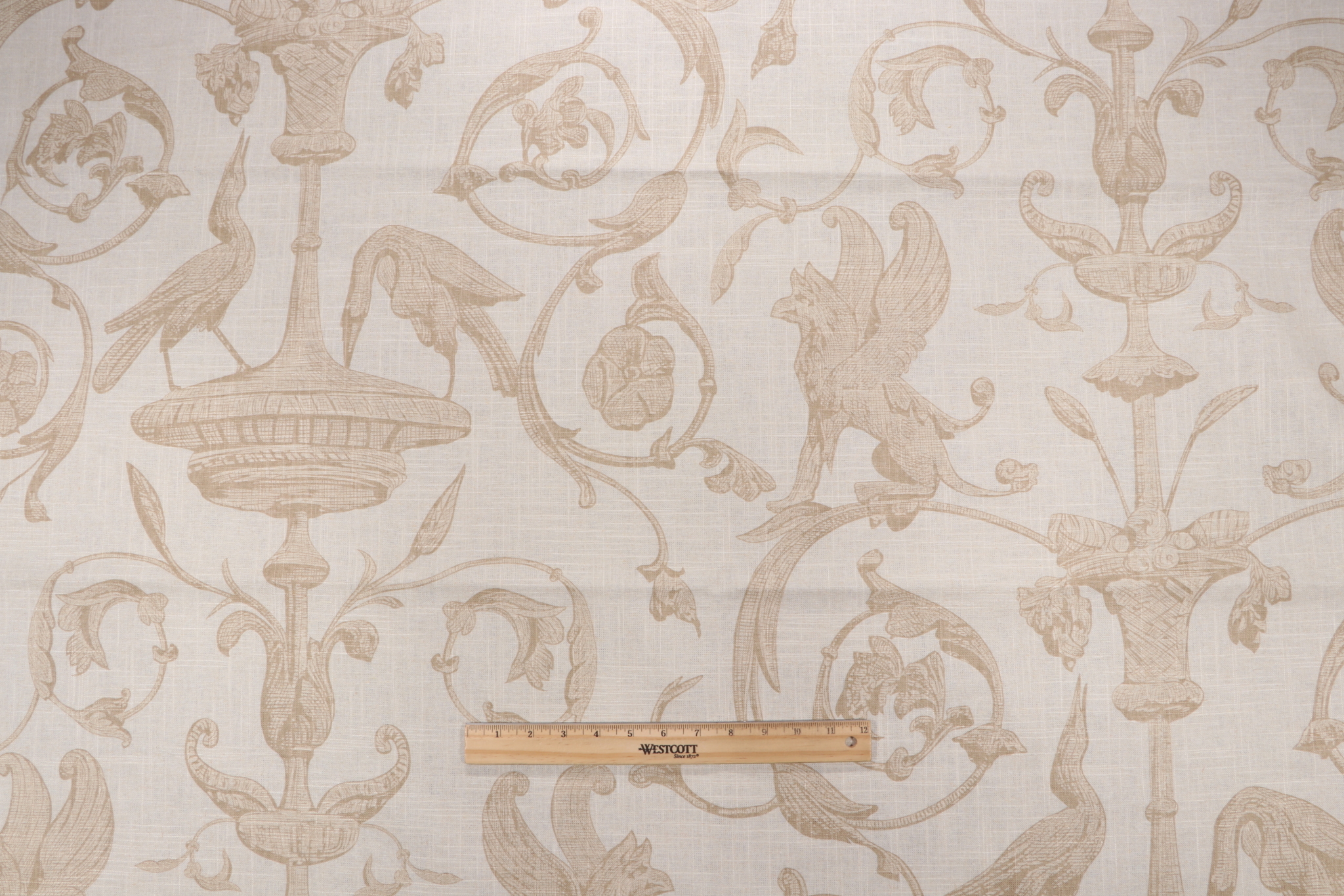 Thibaut Renaissance F91316 Printed Linen Blend Drapery Fabric in Beige is a remnant, which is sold as a whole piece.