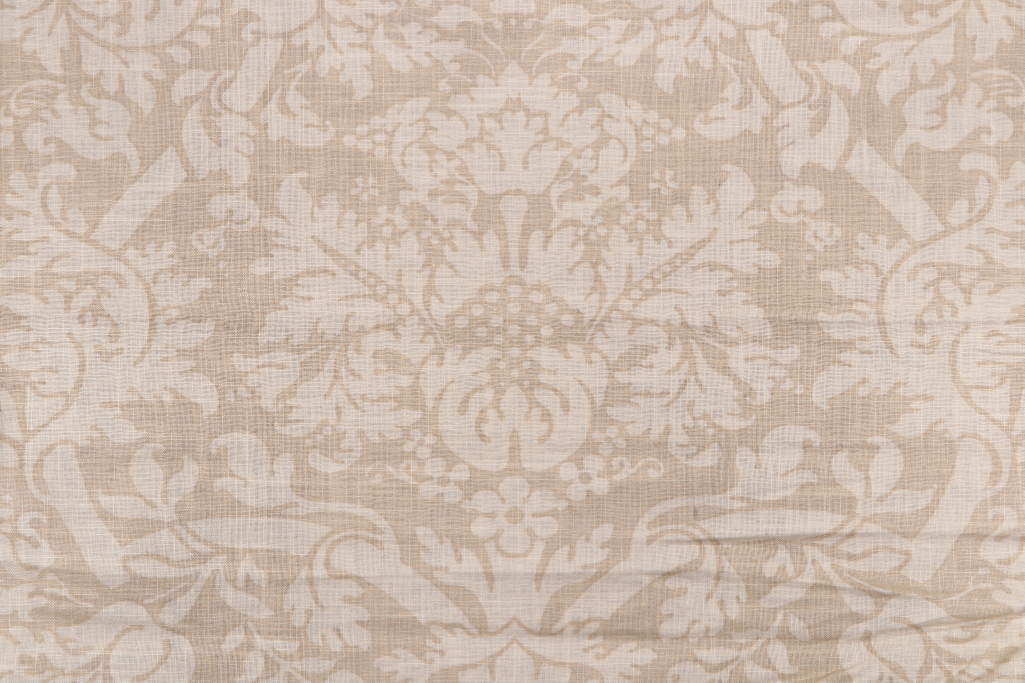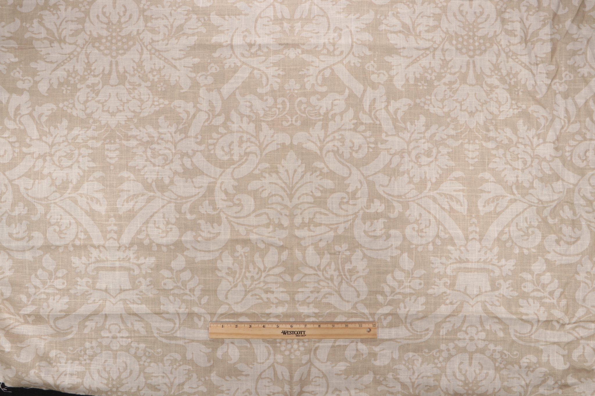 Thibaut Residence Damask F91348 Printed Linen Blend Drapery Fabric in Beige is a remnant, which is sold as a whole piece.