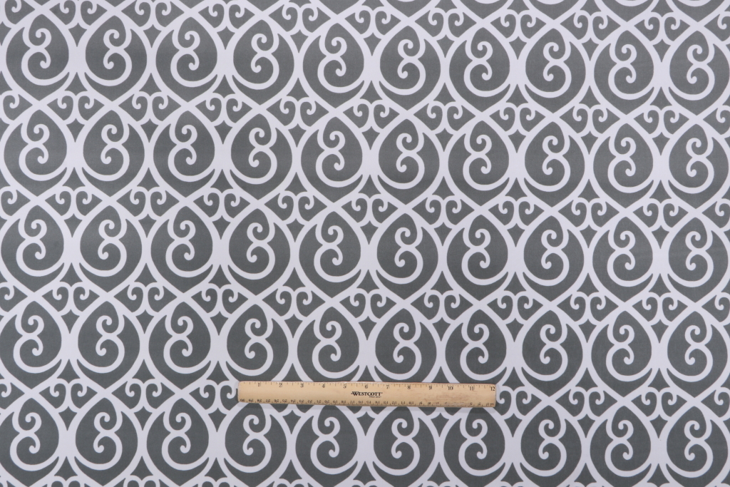 4.75 Yards Scroll Trellis Printed Velour Decorator Fabric in Pewter Details
