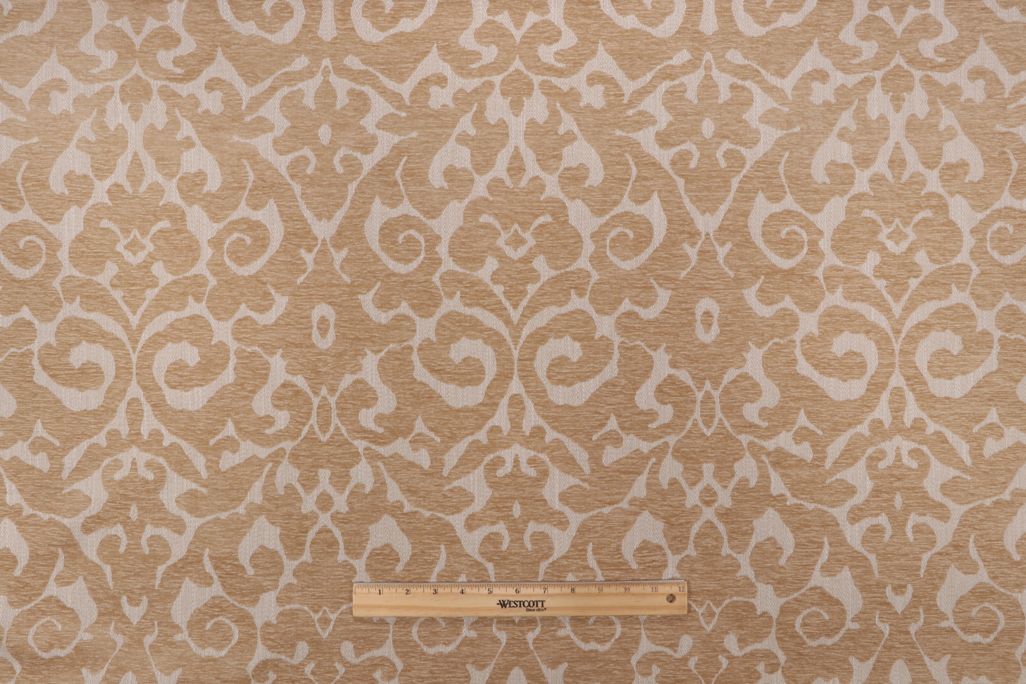 PK Lifestyles Verona Damask Woven Chenille Upholstery Fabric in Wheat Details