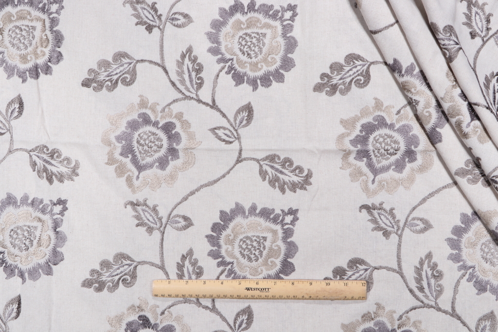 2 Yards Floral Embroidered Drapery Fabric in Stone Details