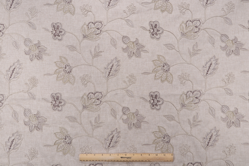 Floral Embroidered Drapery Fabric in Stone is a remnant, which is sold as a whole piece.