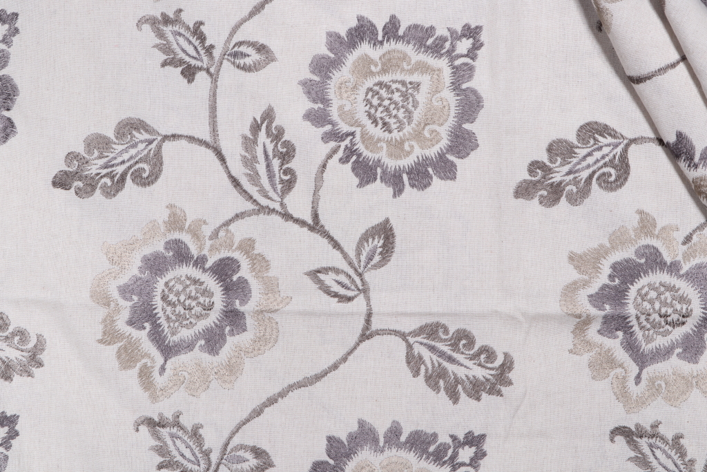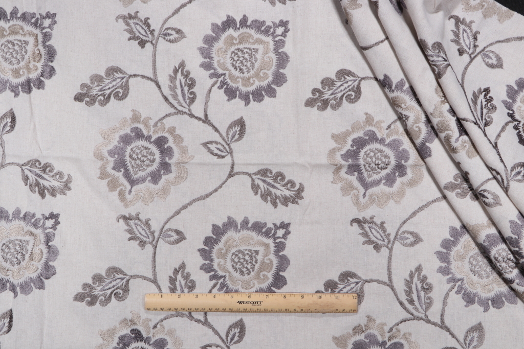 2.5 Yards Floral Embroidered Drapery Fabric in Stone Details
