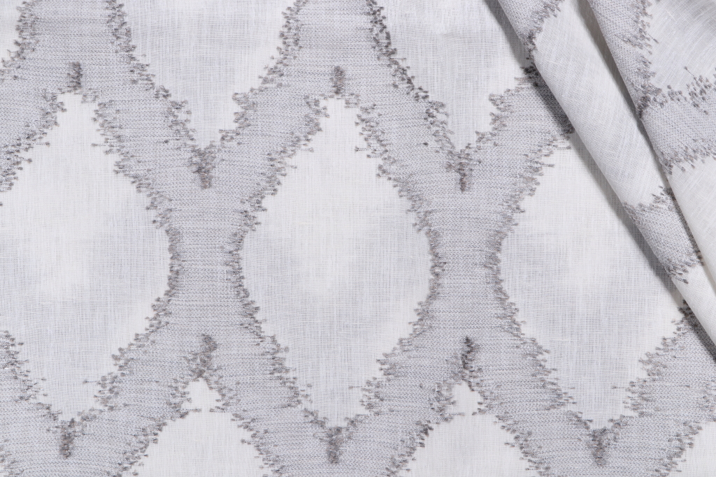 3 Yards Diamond Ikat Embroidered Drapery Fabric in Smoke Details