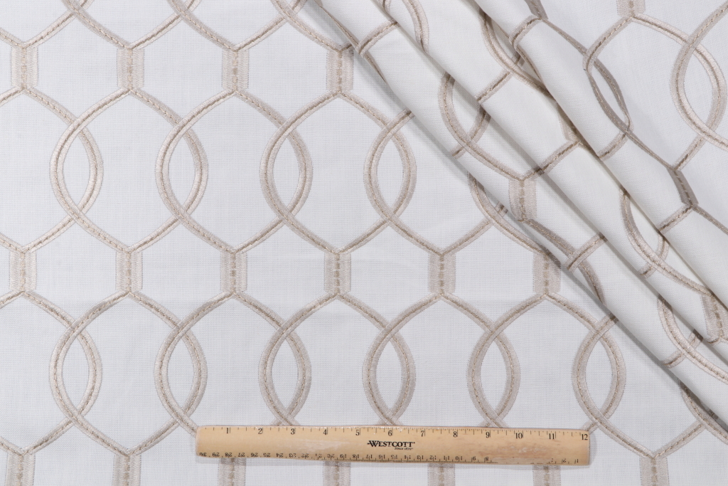 1.38 Yards Hourglass Embroidered Drapery Fabric in Snow Details