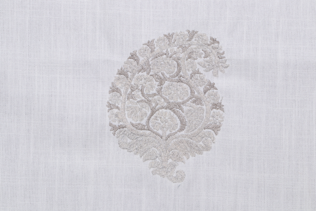 1.5 Yards Paisley Shimmer Embroidered Drapery Fabric in Silver Mist Details