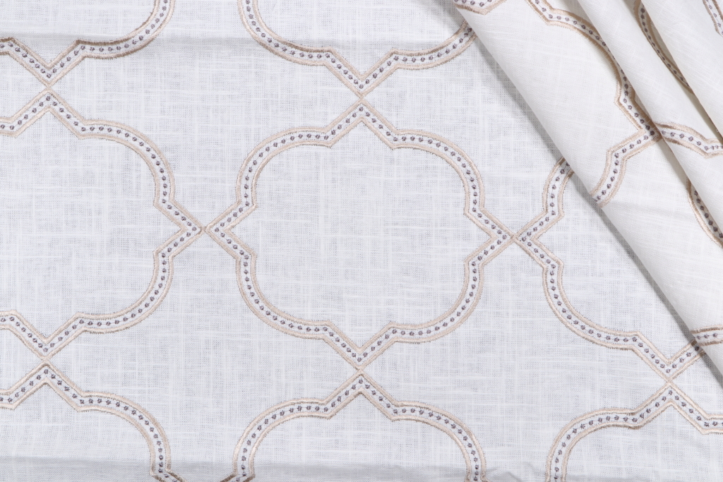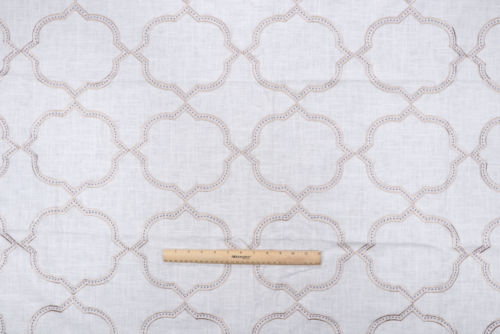 1 Yard Quatrefoil Embroidered Drapery Fabric in Stone Details