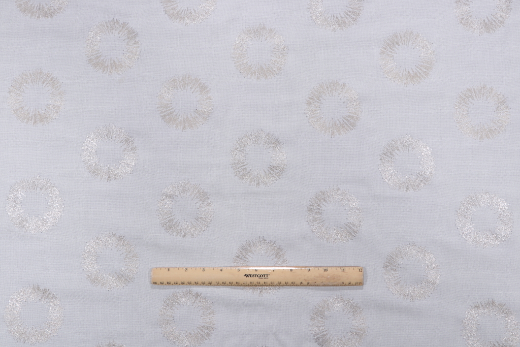 Solange Embroidered Drapery Fabric in Quartz/Metal is a remnant, which is sold as a whole piece.