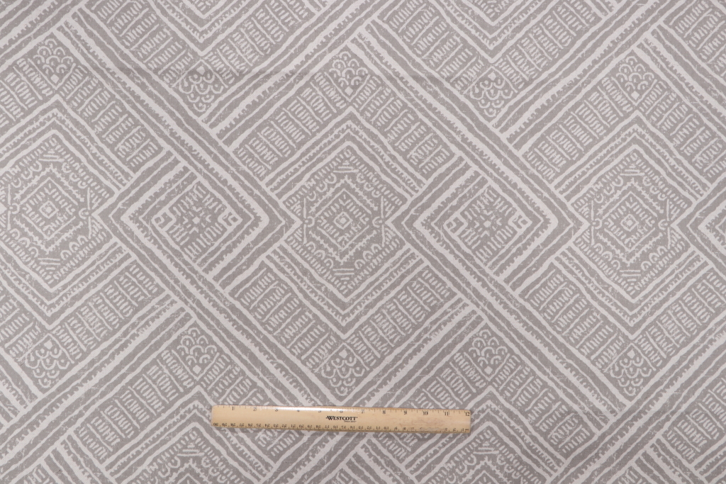 Richloom Algers Printed Cotton Drapery Fabric in Sterling is a remnant, which is sold as a whole piece.