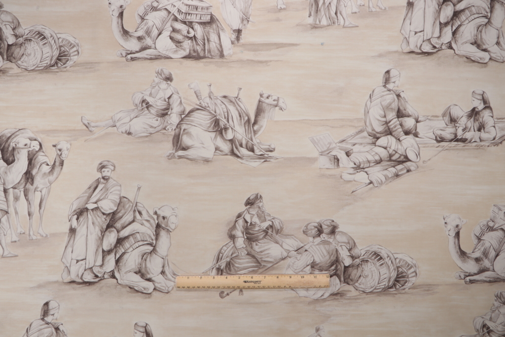 4 Yards Scalamandre Halte Dans Le Desert Printed Drapery Fabric in Fusain Details