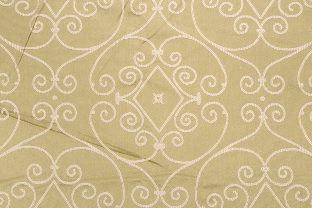 Thibaut Lavolta Scroll W71809 Woven Decorator Fabric in Green is a remnant. Fabric remnants refer to leftover pieces of fabric from production runs at manufacturing sites or pieces that remain from by the yard stock. The lengths of these remnants can vary from a few inches to several yards and are typically sold at a reduced price, since they represent remaining inventory.
