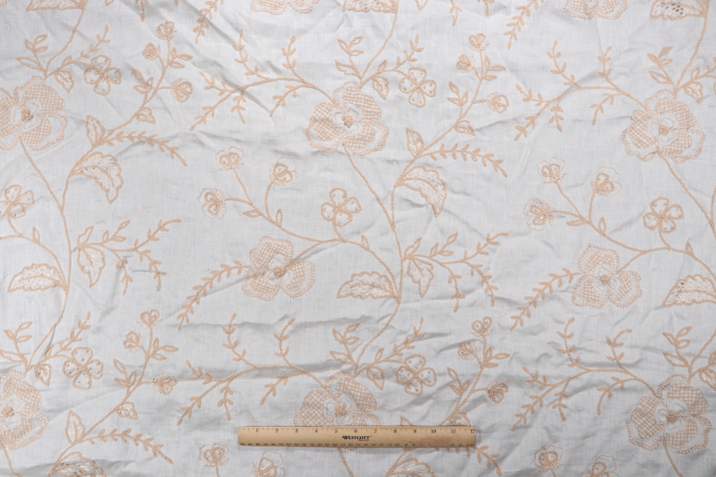 Grey Watkins Kamala Embroidered Drapery Fabric in Cream is a remnant, which is sold as a whole piece.