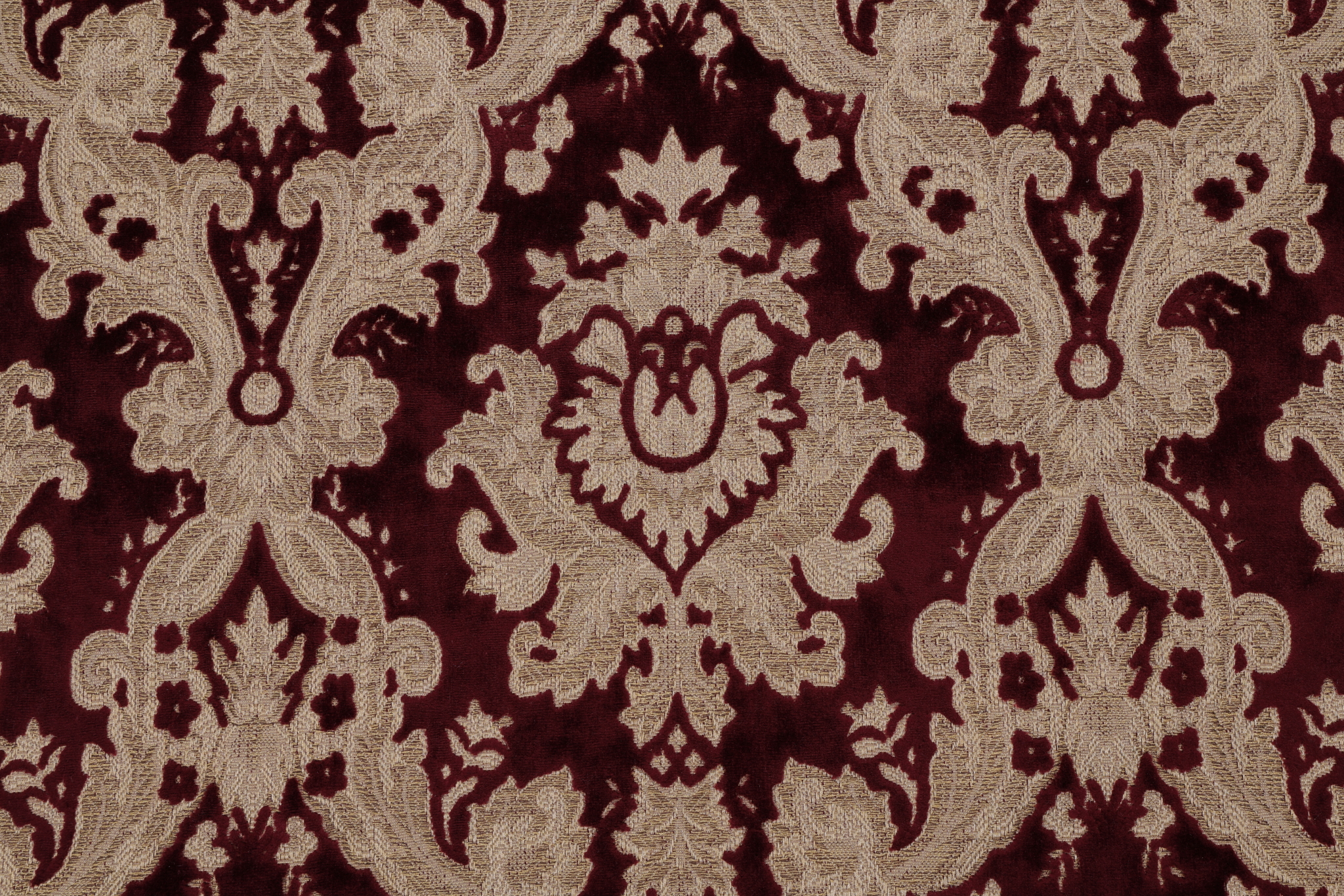 Chauncy Damask Velvet Upholstery Fabric in Bordeaux Details