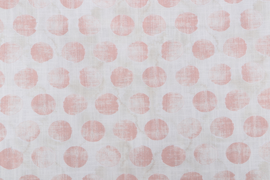 Ellen Degeneres Silva Spots Printed Cotton Drapery Fabric in Blush is a remnant, which is sold as a whole piece.