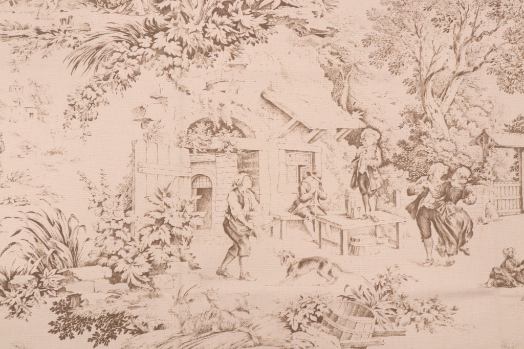 Stof Fabrics Festin Printed Cotton Drapery Fabric in Beige. This printed fabric is perfect for window treatments, decorative pillows, handbags, light duty upholstery applications and almost any craft project. This fabric has a soft workable feel yet is stable and durable.