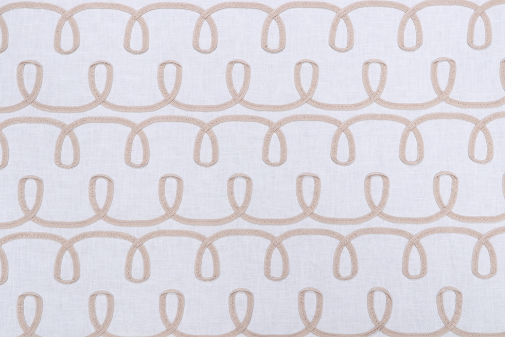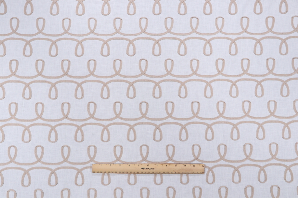 PK Lifestyles Loop & Lace Embroidered Drapery Fabric in Parchment is a remnant, which is sold as a whole piece.